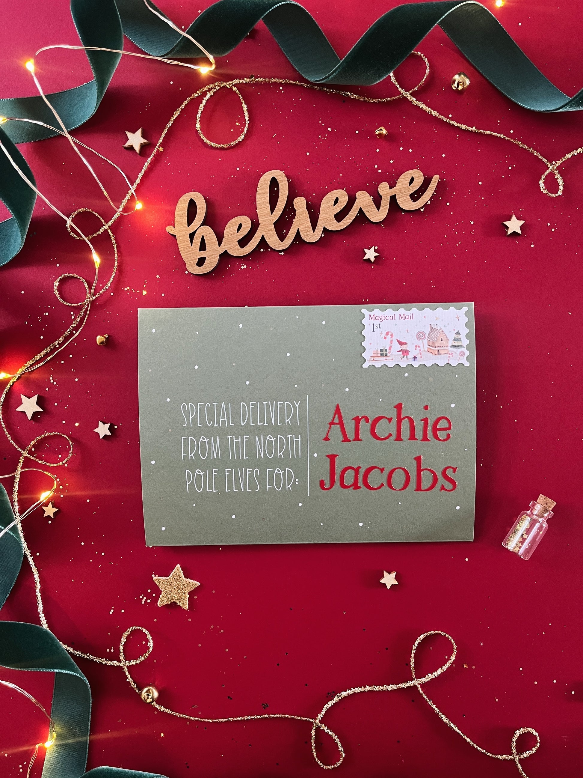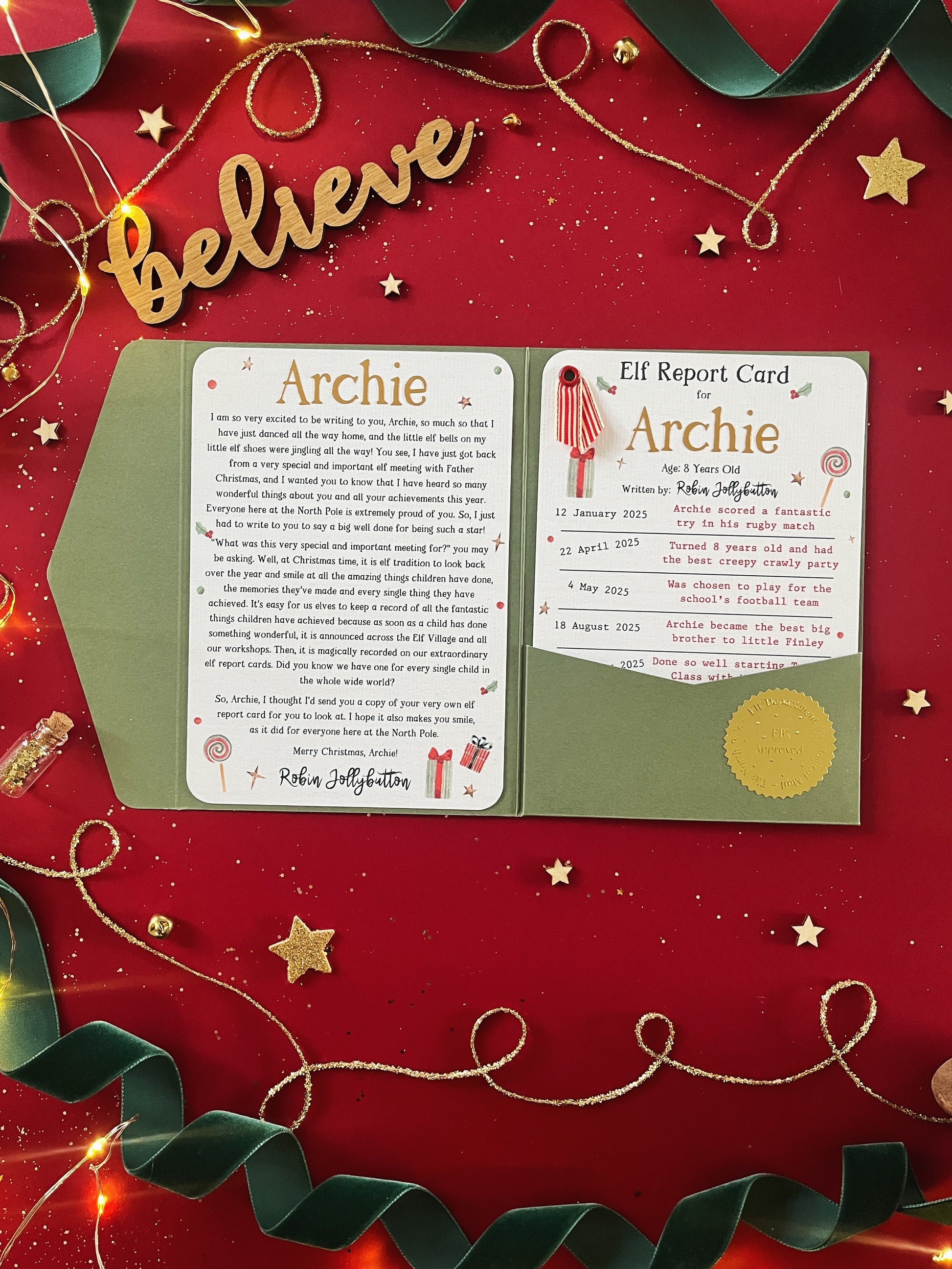 Our magical envelope opens to display your child's personalised letter and elf report card, which will contain five of their wonderful achievements from this year. These could be anything from school or club awards, whether they've learnt to ride their bike, become a big brother or sister, or been brave when losing a tooth.