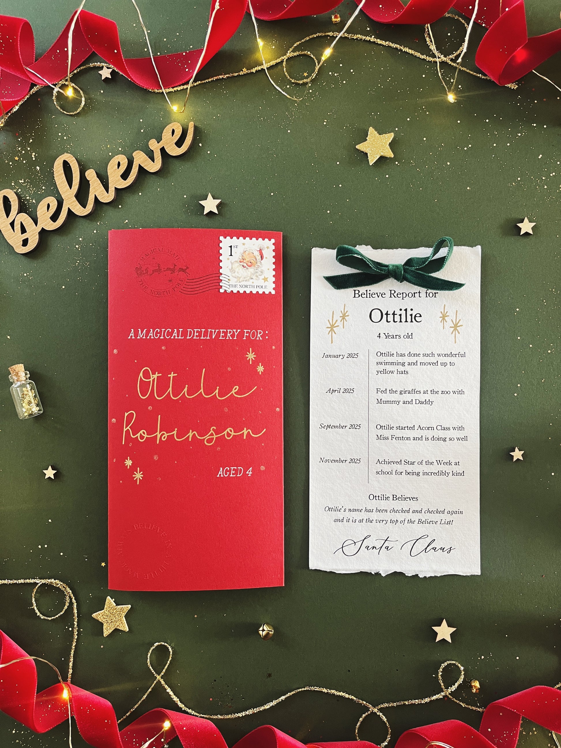 Printed on handmade paper and hand-finished with our official Father Christmas or Santa Claus wax stamp, our Believe Reports and Letters are designed to have the most traditional and authentic feel possible.