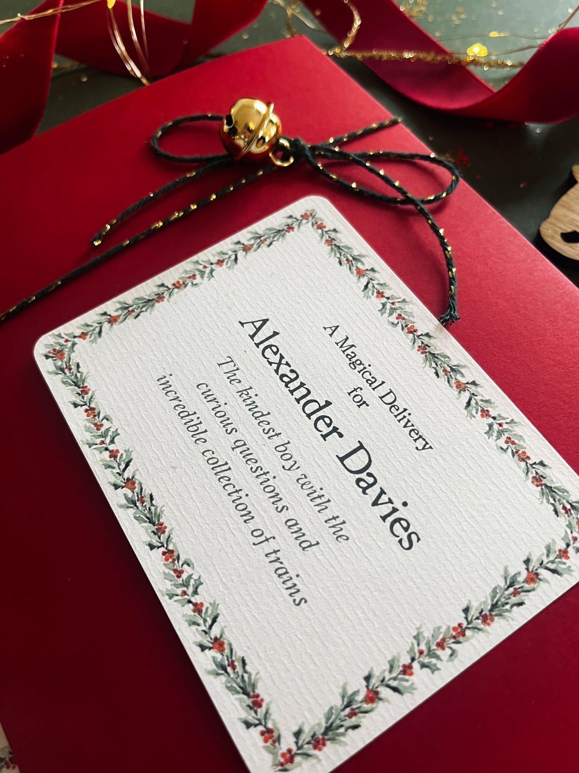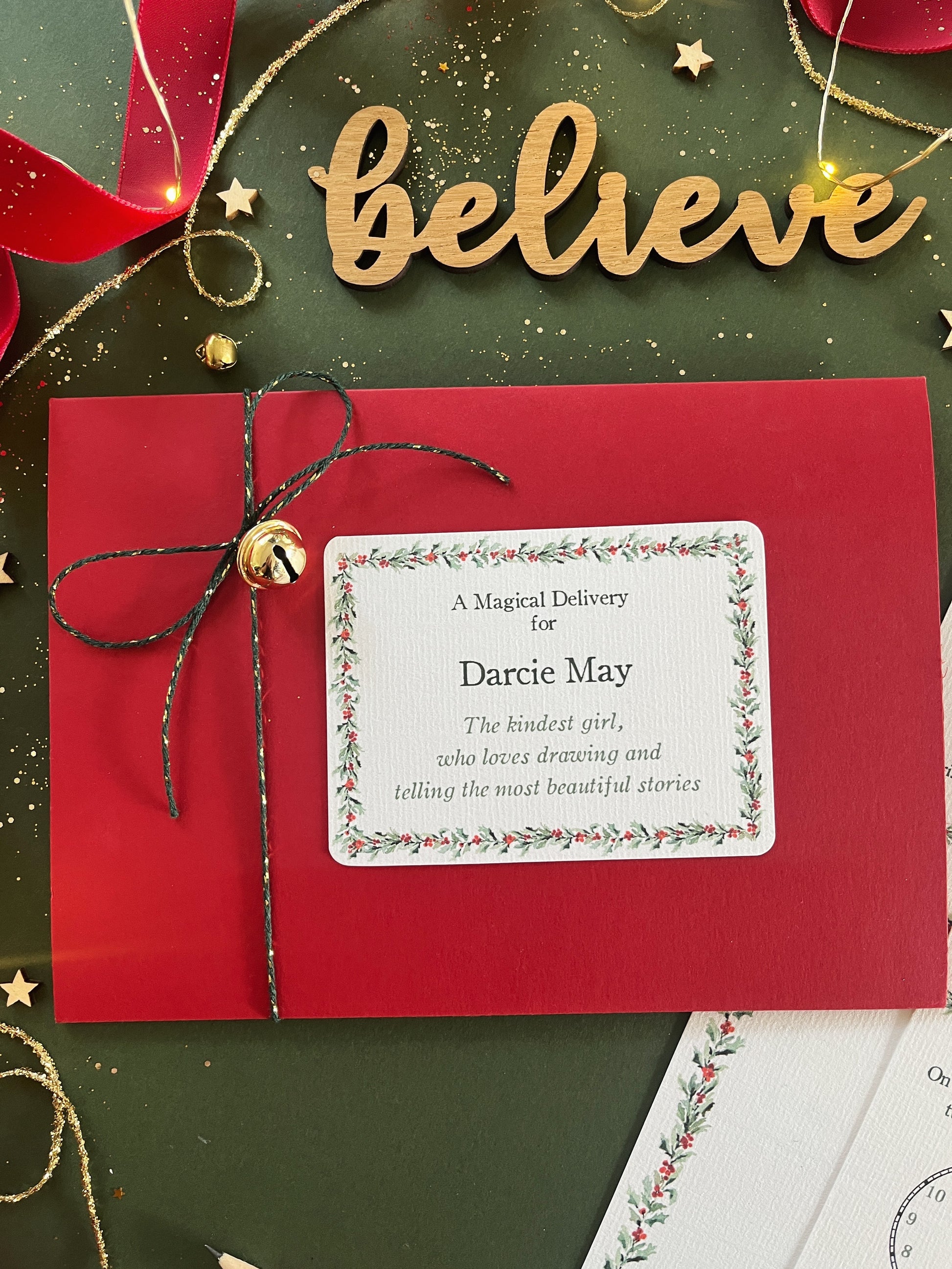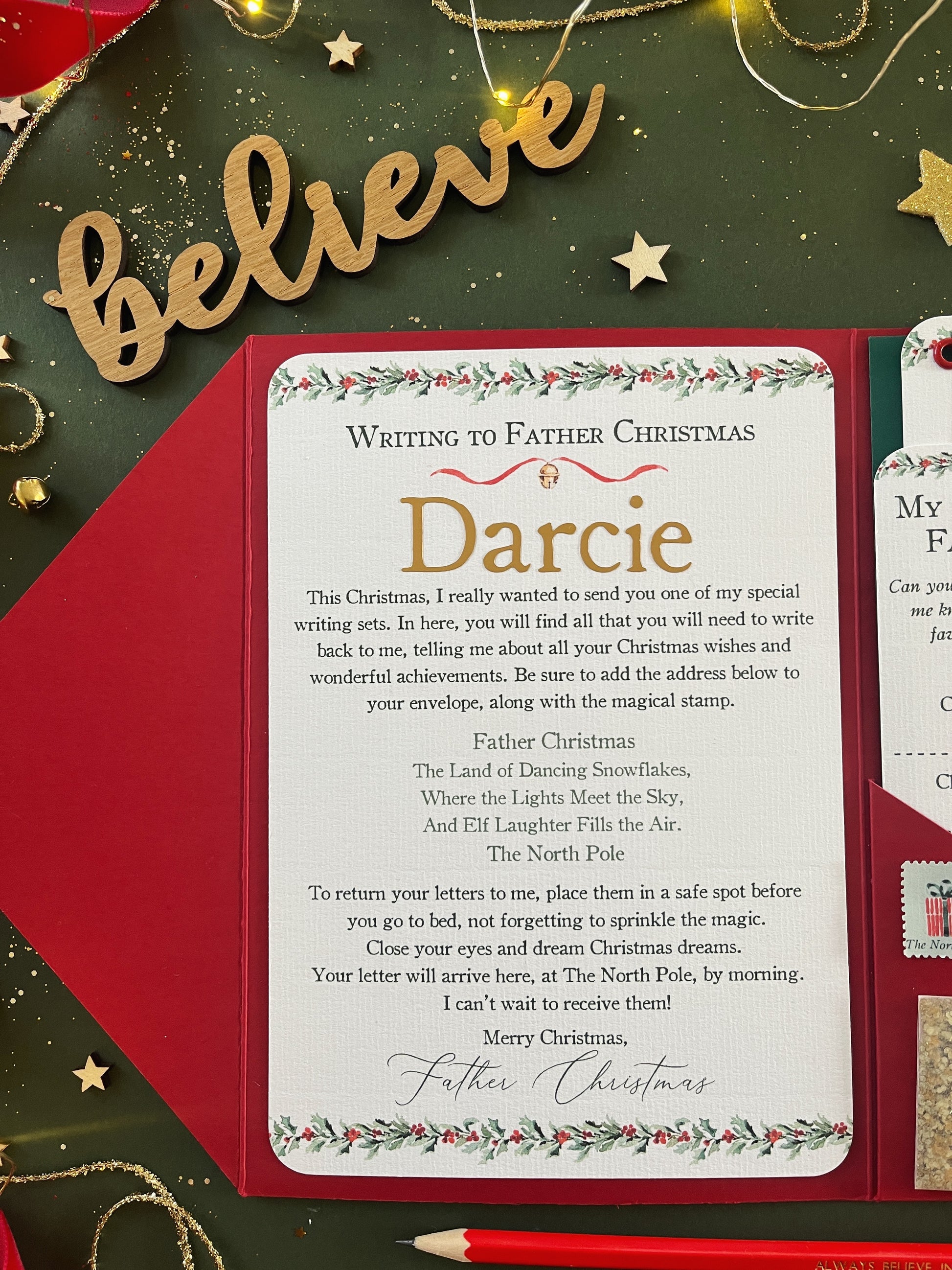 After seeing their name and personalised wording on the front of the envelope, your child will untie and open this writing set to reveal a personalised letter from Father Christmas, along with return letters that contain everything Father Christmas could wish to know.